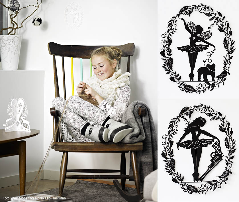 Virkelig klassisk håndverk til julen er Karen Bit Vejles fantastiske papirklipp – bilder av papir og luft. Her får du små hjerter til juletreet, juletrær til bordet og ballerina bulldog med alle sine magiske powertools til å henge i vinduet.
