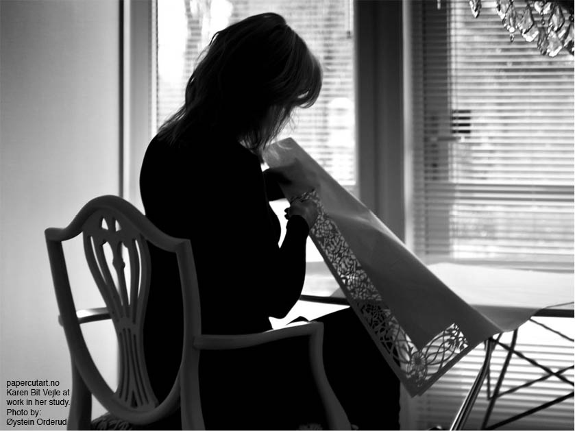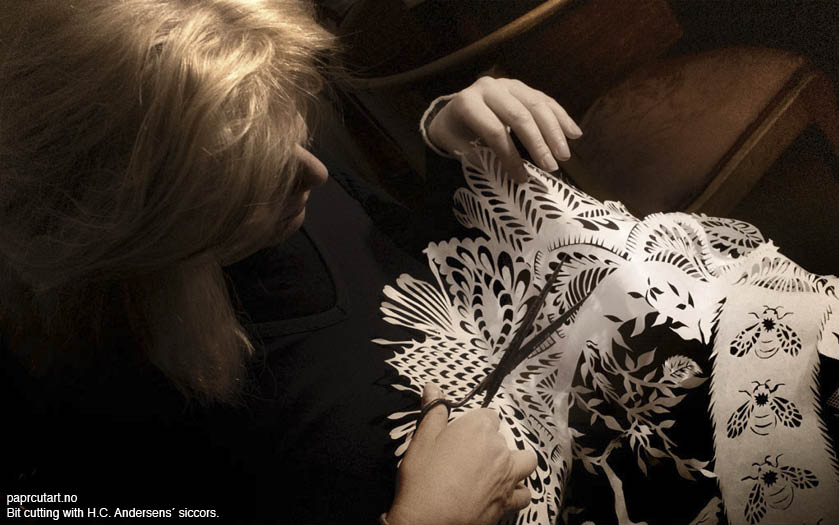 En annen papirklipper, mer kjent for sine eventyr, sa en gang at ”At klippe, det er den første Begynnelse for Digteriet”. Denne dansken var eventyrforfatteren H.C. Andersen, som i sin tid også var en av Danmarks mest kjente papirklippere. Han hadde alltid pennen og saksen med seg i lommen sin. Så er det kanskje fra han Karen Bit Vejle har hentet deler av sin inspirasjon… Uansett har hun nådd langt. For bare fire år siden lå papirklippene til Karen Bit Vejle under teppet på stuegulvet hjemme i Trondheim – nå vil hele verden se dem.